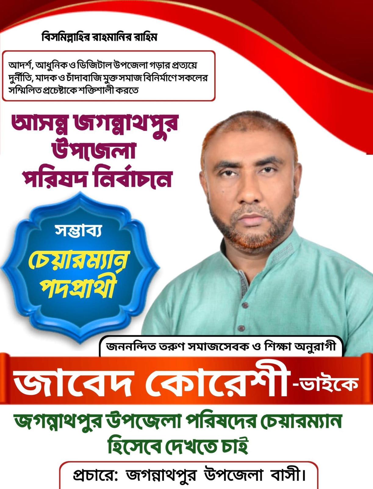 ইউরোভিশন ডেস্ক :আসন্ন জগন্নাথপুর উপজেলা পরিষদ নির্বাচনকে কেন্দ্র করে স্থানীয় রাজনীতির মাঠ উত্তপ্ত হতে শুরু করেছে। সম্ভাব্য প্রার্থীদের নিয়ে চলছে নানা চুলচেরা বিশ্লেষণ। এর মধ্যে আলোচনার কেন্দ্রবিন্দুতে উঠে এসেছেন রাজপথের লড়াকু সৈনিক ও সাবেক ছাত্রনেতা জাবেদ কোরেশী। এলাকার সাধারণ মানুষ ও তরুণ প্রজন্মের একটি বড় অংশ তাকে আগামী নির্বাচনে উপজেলা চেয়ারম্যান হিসেবে দেখতে চায়।